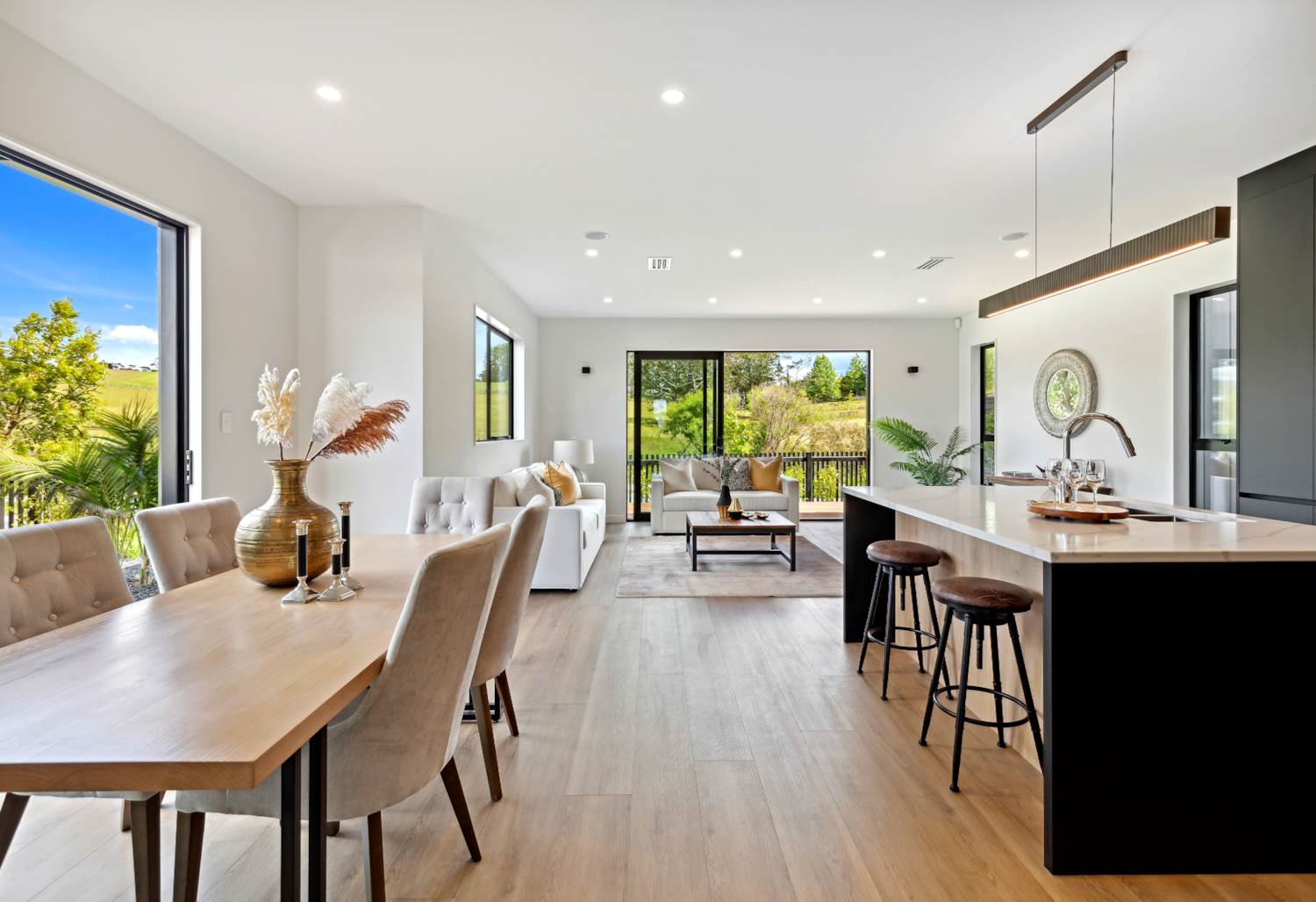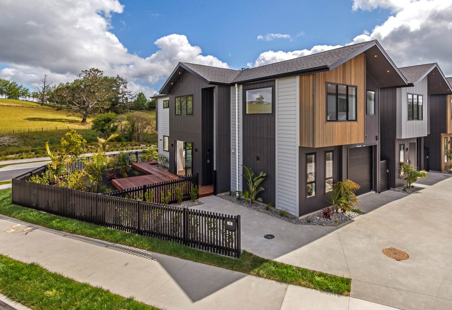 Positioned on a sunny corner site in sought-after Milldale, this boutique development offers 13 beautifully designed standalone homes. Each residence combines modern style with low-maintenance living, featuring quality finishes and thoughtful layouts ideal for families and professionals alike. Every four-bedroom, two-and-a-half-bathroom home is centered around a north-facing open-plan kitchen, dining, and living area bathed in natural light. These inviting spaces flow seamlessly to a kwila deck overlooking a peaceful reserve — perfect for relaxed mornings or quiet evenings. Upstairs, the master suite includes a walk-in wardrobe, ensuite, and study nook, while three additional bedrooms share a contemporary family bathroom. Internal-access garaging and an extra off-street parking space add everyday convenience. Enjoy a lifestyle of ease and connection with Ahutoetoe School, early learning centres, parks, and walkways all close by. Silverdale Mall and motorway access are just minutes away, and Milldale’s direct bus service provides easy links to the Hibiscus Coast Bus Station and beyond. Experience modern living in a thriving, family-friendly community.