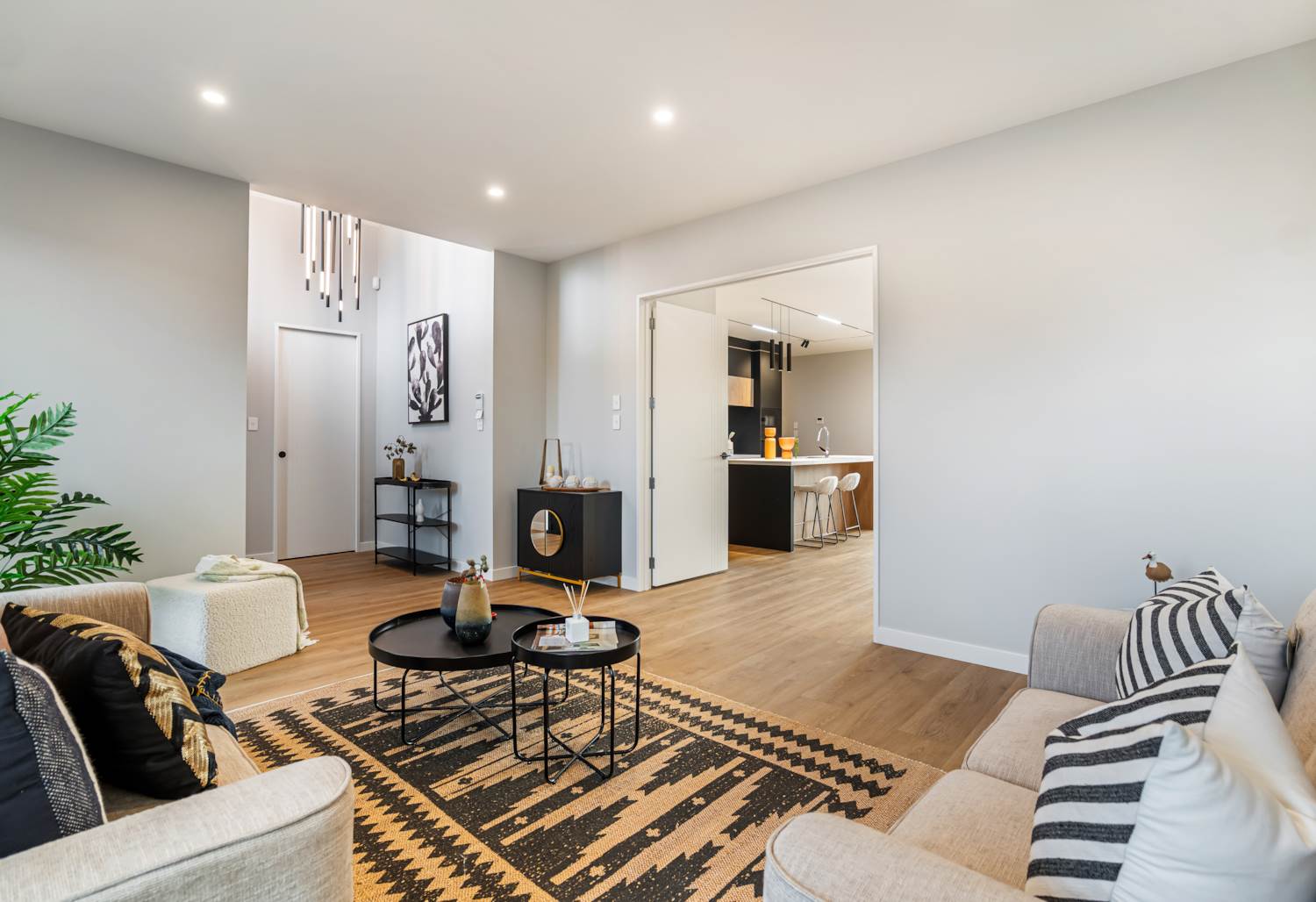 Situated within the established residential community of Milldale, this newly completed single-level home presents a carefully resolved example of contemporary design. The exterior combines weatherboard, fibre-cement board and white brick cladding, creating depth, texture and a refined street presence, complemented by structured landscaping and subtle exterior lighting. The result is a residence that is both visually distinctive and designed for long-term durability. Internally, the home is centred around a well-proportioned open-plan kitchen, dining and living domain that supports both everyday family life and entertaining. The kitchen is specified with premium Bosch appliances, a walk-in pantry and generous island bench, while rail lighting introduces architectural clarity and effective task illumination. Large-format sliding doors provide direct connection to the outdoor deck, where integrated deck lighting enhances evening usability and reinforces the indoor–outdoor relationship. A separate lounge offers additional flexibility for media use, formal sitting, or quiet retreat, and in-ceiling speakers are incorporated to deliver discreet, high-quality audio throughout the main living areas. Accommodation comprises four bedrooms, including a master suite with walk-in wardrobe and ensuite, supported by a contemporary family bathroom. Functional planning is further supported by ample storage, a dedicated laundry and climate control for year-round comfort. Security and convenience are addressed through the inclusion of CCTV, while a professionally designed landscaped garden ensures an attractive yet low-maintenance outdoor environment.